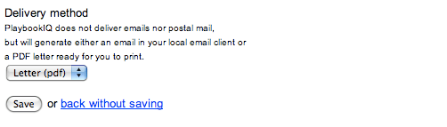 PlaybookIQ now offers letter templates. Letter templates are created just like an email template. Under the template tab in your account, choose create a new template. In addition to name fields, you can now add in address and date fields. After composing the letter, you’ll be given the choice to create the template as a letter (pdf) or email. Choose letter and save.